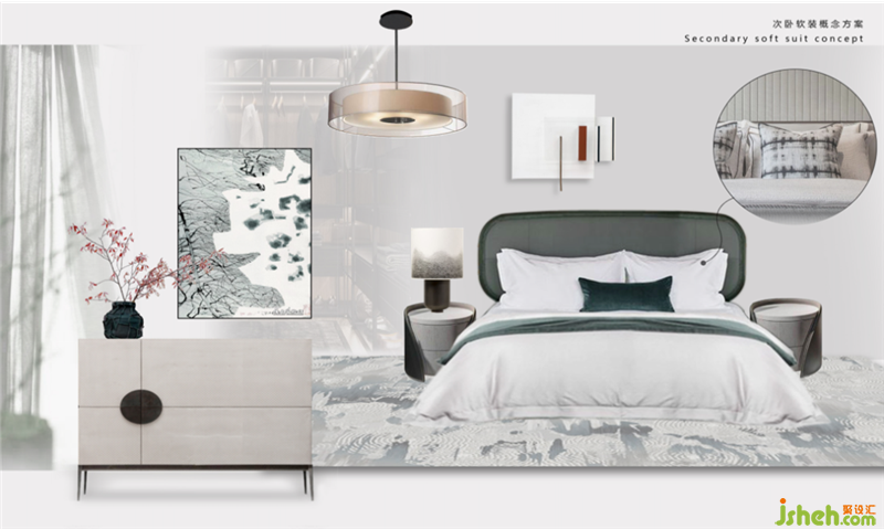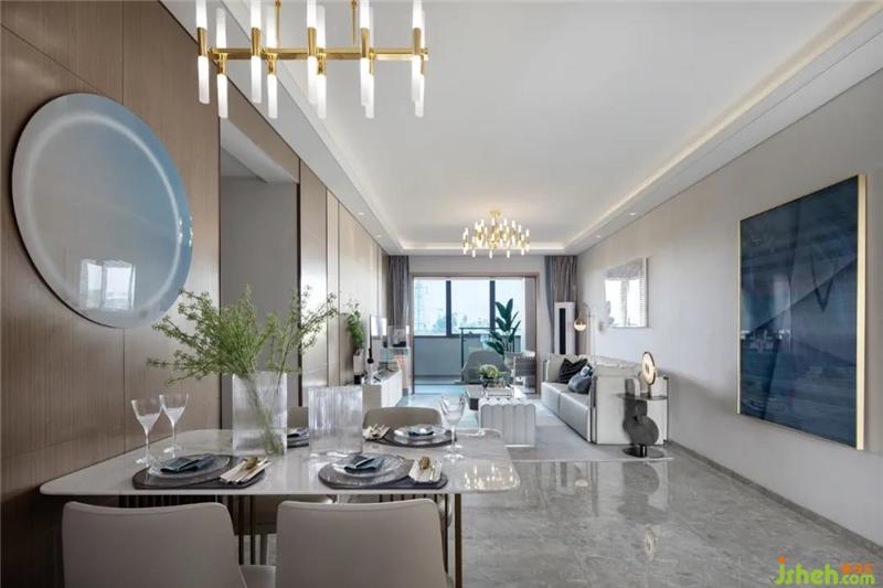 莫蘭迪色系的高級灰色調(diào)彰顯沉靜的格調(diào),為空間陳設(shè)調(diào)和出足夠氛圍,獨(dú)具藝術(shù)氣息的大型落地裝飾鏡,營造造型,材質(zhì),光線的互動(dòng),提升空間的視覺感與品質(zhì)感。