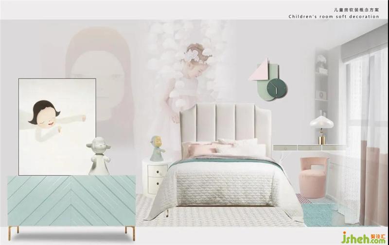 兒童房意在打造女孩子的粉色王國,用水綠色點(diǎn)亮空間體現(xiàn)了孩童活潑個(gè)性的特質(zhì),選用藝術(shù)家奈良美智的作品為空間增添十足玩味,在設(shè)計(jì)上實(shí)現(xiàn)空間體驗(yàn)最大化,營造出輕松愉悅的氛圍。利用飄窗位置延伸書桌功能,增加空間的實(shí)用性。