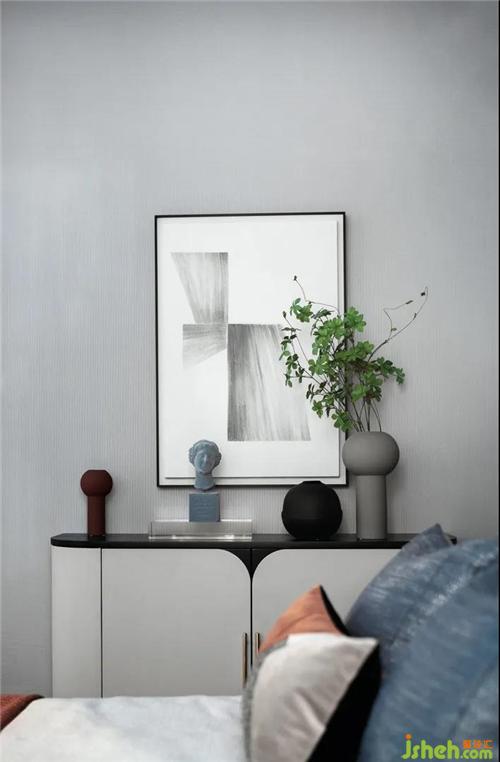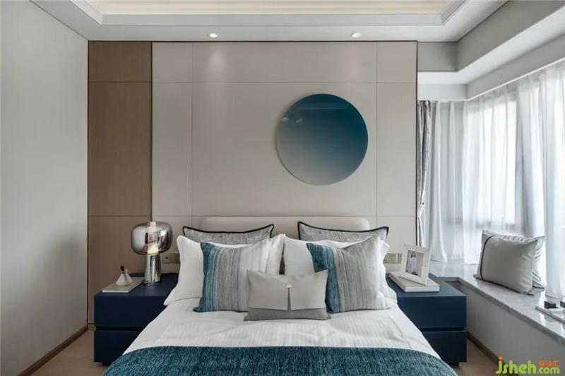 相對(duì)于客廳的熱鬧和活躍,主臥意在營(yíng)造一種安靜舒適的氛圍樣板房設(shè)計(jì),所以在軟裝設(shè)計(jì)中設(shè)計(jì)師選取藍(lán)色調(diào),氣質(zhì)簡(jiǎn)約,細(xì)節(jié)卻十分考究,契合精致而又不失隨性。