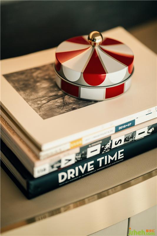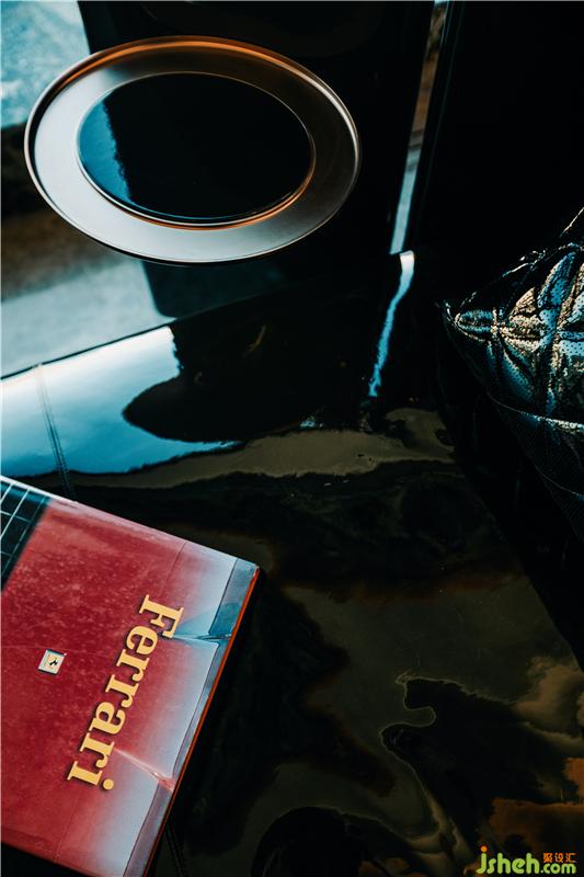 ■ 置于漆皮沙發(fā)上的圖書《 Ferrari 》是伴隨設(shè)計師十余年的經(jīng)典讀物,代表不斷銳意創(chuàng)新、悅想人生的生活態(tài)度。紅色封面與漆皮沙發(fā)相映成趣,即是生活藝術(shù)的表達(dá),也是對經(jīng)典的致敬。