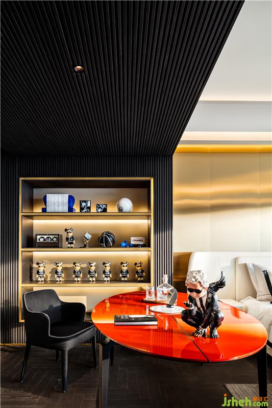 然而,除了致敬之外,這個空間更深層的設(shè)計(jì)內(nèi)涵在于一種剝離標(biāo)簽的「中性」。無性別感的黑白用色,采用一件意大利餐桌(而非女性化的書桌臺或男性化的辦公桌)作為一側(cè)起居角落的軸心……所有的設(shè)計(jì)要素都具有一種開放性,而這種開放性則是「玩家」的個性得以彰顯的前提。