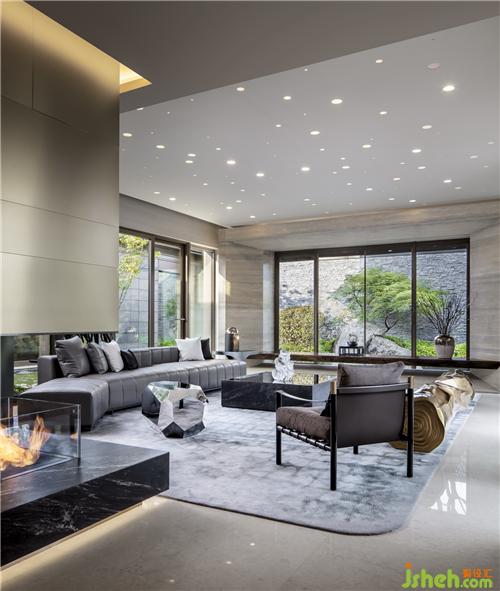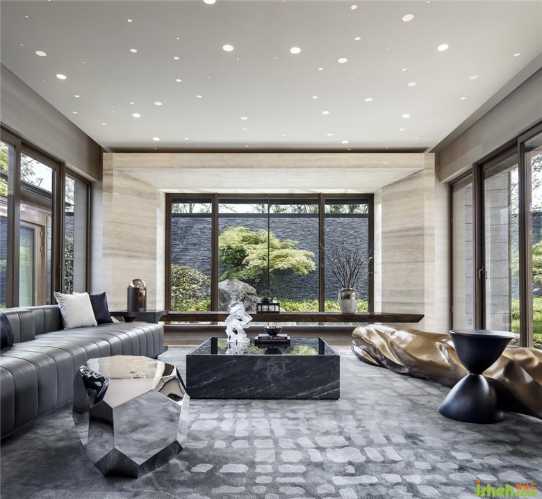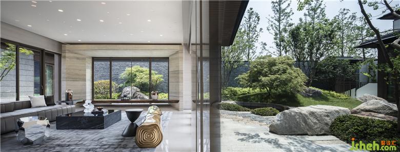 在一個(gè)有著明顯文化印記的地方,如何以文化來回應(yīng)?在建筑與環(huán)境條件相對(duì)優(yōu)越的項(xiàng)目中,如何定位室內(nèi)設(shè)計(jì)的身份?在雙層地下空間,如何點(diǎn)亮昏暗并賦予空間意義?我們并不局限于對(duì)「文人」、「禪意」、「風(fēng)雅」等園林固有意向或符號(hào)的平鋪直敘,而是在平面規(guī)劃前期便介入項(xiàng)目,以設(shè)計(jì)來構(gòu)筑體驗(yàn)的有序化:空間結(jié)構(gòu)的中心(即客廳)成為設(shè)計(jì)的「意義核心」,縱橫生長(zhǎng)兩條軸線——橫軸串聯(lián)自然的觀賞之道;縱軸牽引精神的外放與內(nèi)斂。