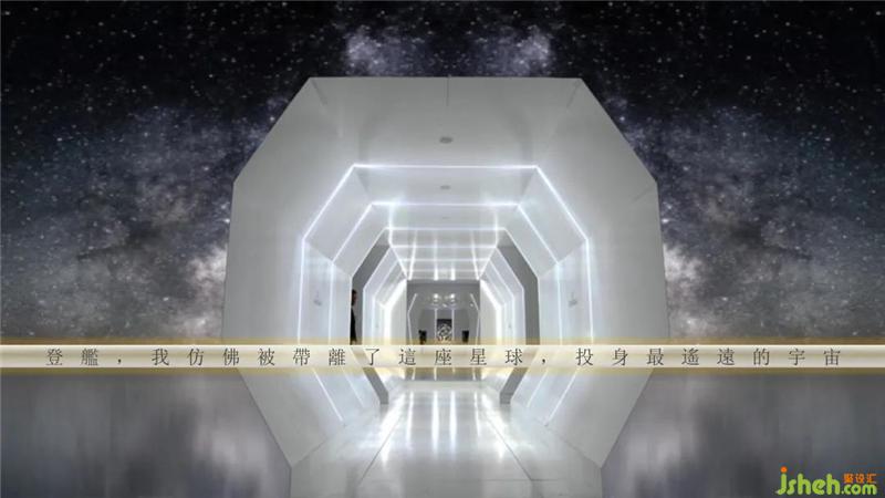 事實上,「宇宙」是規(guī)劃、建筑、景觀與室內(nèi)設(shè)計詮釋「天際」不約而同的關(guān)鍵詞:建筑向北,濱江而立,頂納群星、底接水域,是售樓處,更是「星際會所」;景觀設(shè)計則于池中設(shè)一座模擬「日晷」的銀環(huán),并用太陽譜系墻來傳遞對宇宙時間的理解。通體透明的建筑讓室內(nèi)成為城市「櫥窗」中的展品,我們希望它能具備誘惑人心的力量,吸引每個經(jīng)過江畔的人為「天際」而回頭。
