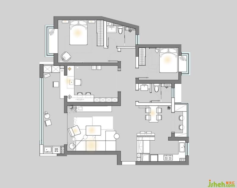 主臥以及次臥,都呈現(xiàn)出室內(nèi)設計師的設計理念和設計靈感。