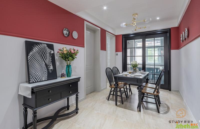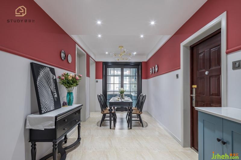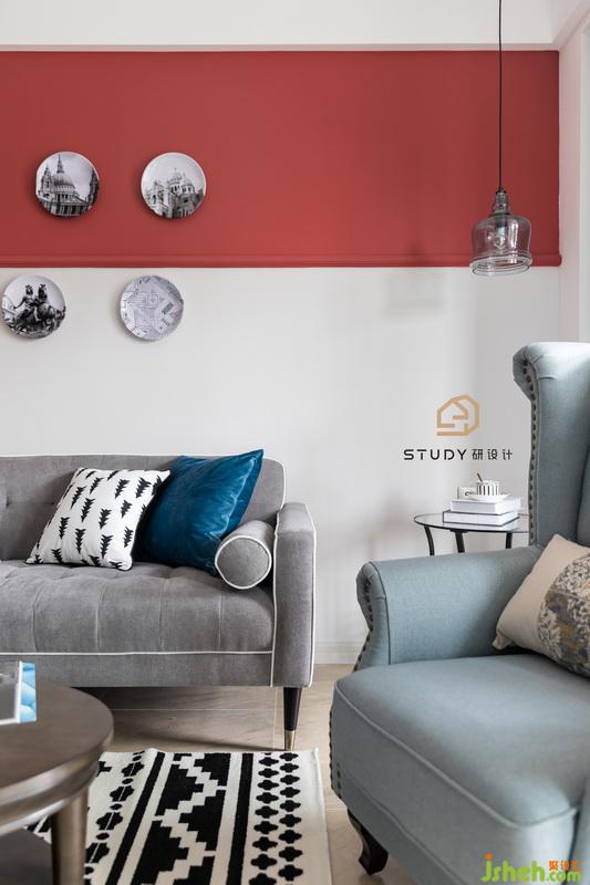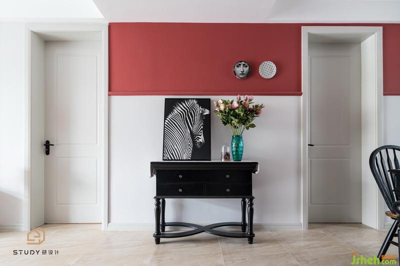 小馬馱著童年的夢(mèng),溫暖而遲緩,正像老棉鞋里面,紅色的絨子上曬著太陽(yáng) 。室內(nèi)設(shè)計(jì)師使用紅白色的墻壁搭配,使得客廳具有特色。