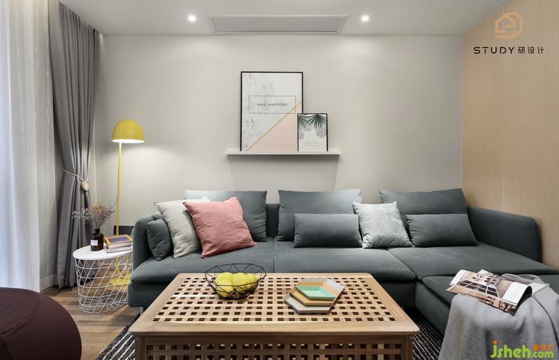 客廳作為待客區(qū)域,室內(nèi)設(shè)計師設(shè)計的背景以淺色為主。客廳中間寬大的主沙發(fā)厚重、舒適,墨灰色作為主沙發(fā)色,也成為整個客廳的點睛色,雅得明朗。