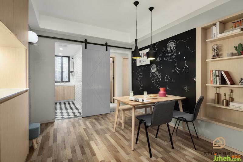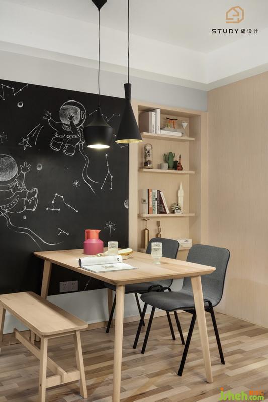 餐廳與客廳統(tǒng)一氛圍,室內(nèi)設(shè)計師利用了簡約的手法和材質(zhì)還原古典氣質(zhì),搭配上造型別致的吊燈,以及餐桌墻壁的壁紙,顯得極具特色。