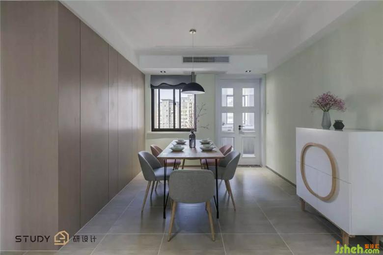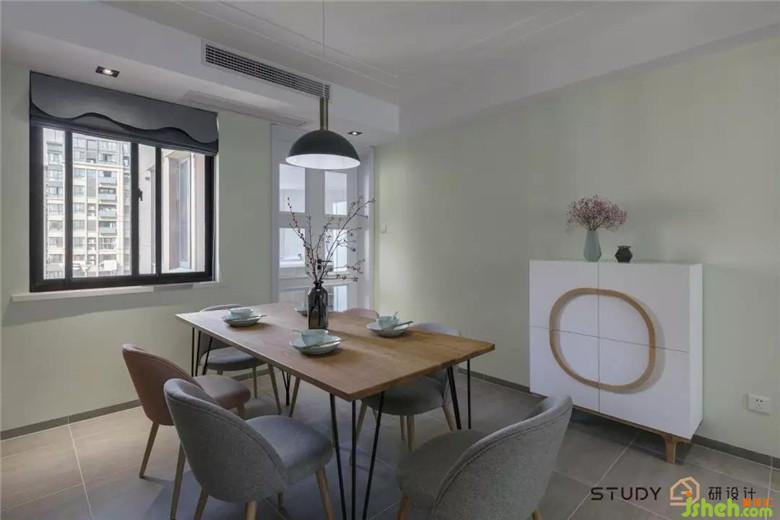 室內設計師餐廳的設計上利用了簡約的手法和材質,搭配上精簡別致的吊燈,營造出餐桌上的舒適與溫馨。