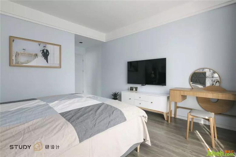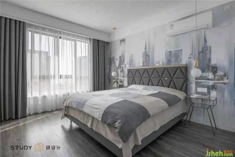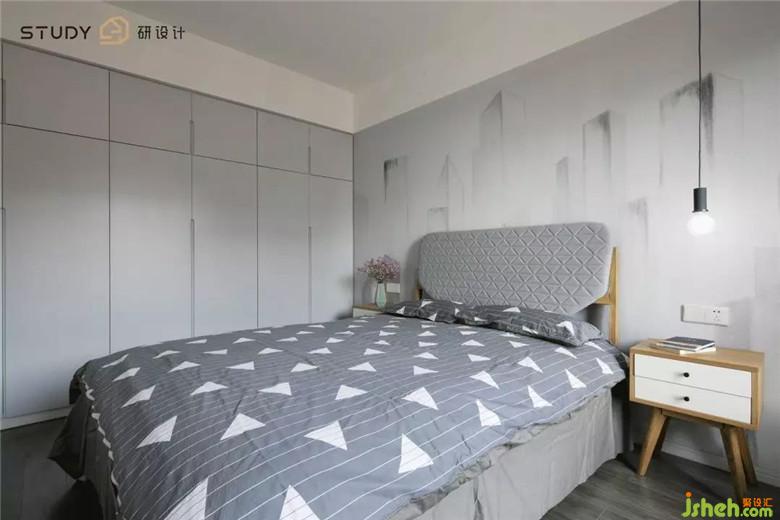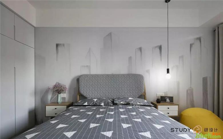 次臥在床的選擇上,室內設計師特意挑了灰白色的款式,單色的色調以簡單的為主,簡單大方。