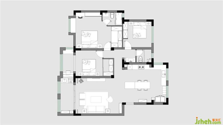 室內(nèi)設(shè)計師將廚房、餐廳、北陽臺,打開來重新組合,家庭聚餐、朋友做客、滿滿互動性