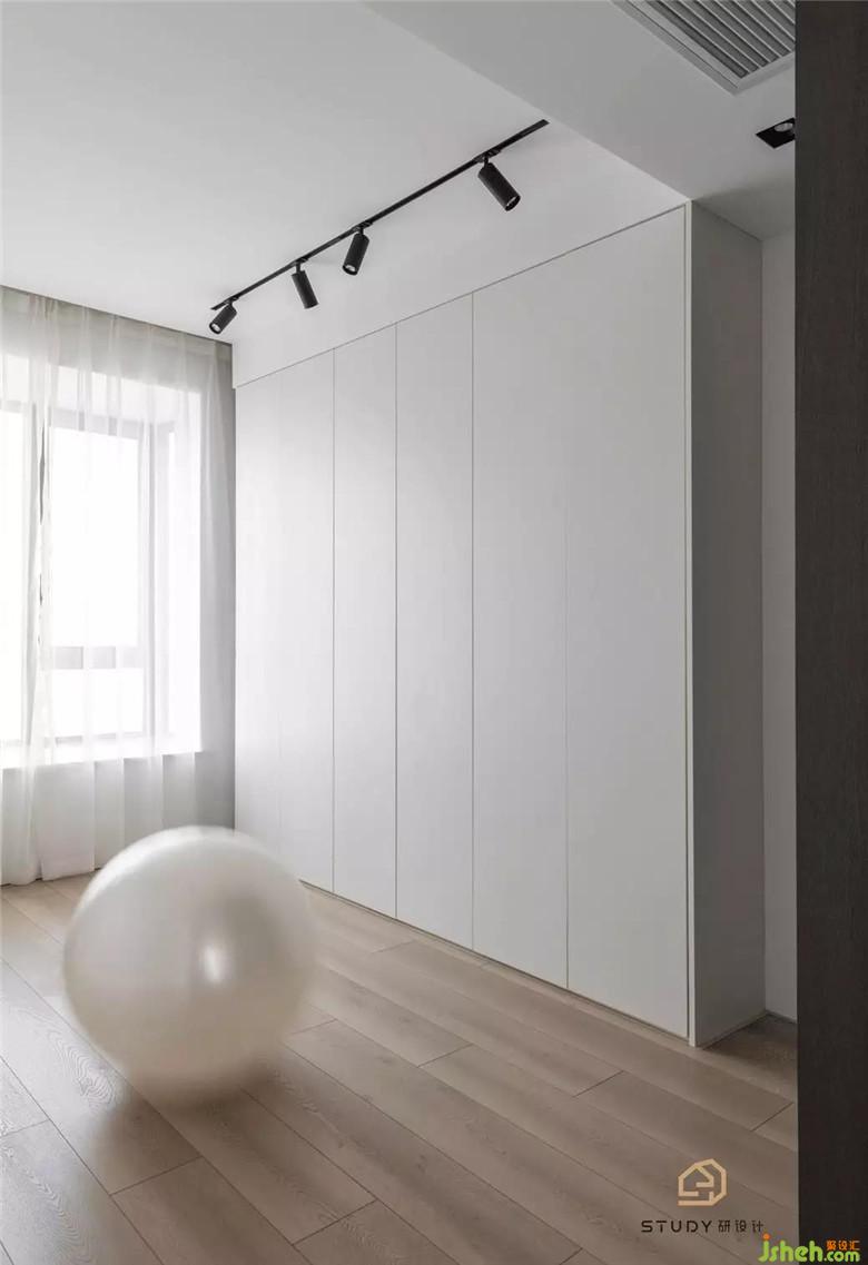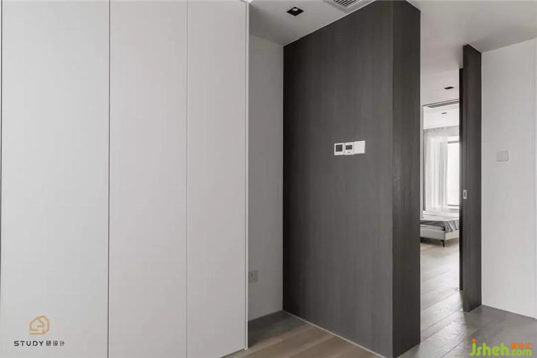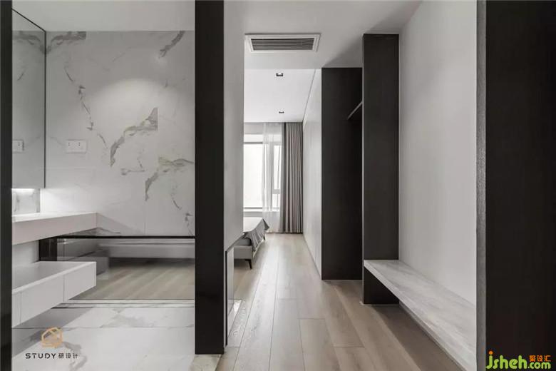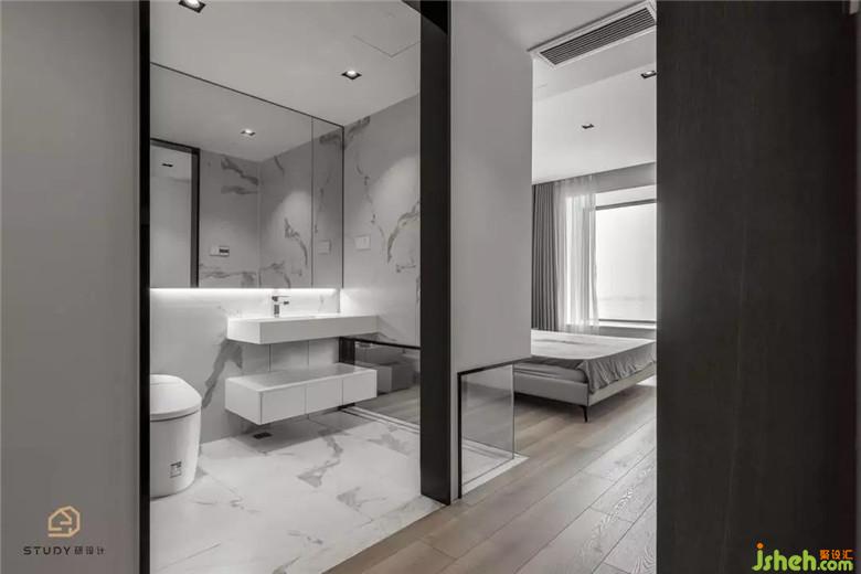 臥室套間的衛(wèi)生間沒有設(shè)置門,保留大門洞。盡可能的讓空間開闊通透,任意行走。