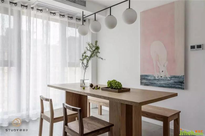 ??餐桌餐椅與客廳相呼應(yīng),溫潤(rùn)的??在整個(gè)空間蔓延。
