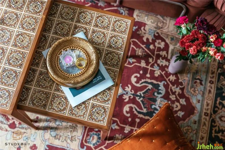 古老的印第安紋樣地毯,獨(dú)特的瓷磚桌面茶幾,一束來自春日的鮮花,帶你傾聽大自然的鳥鳴蟬唱。