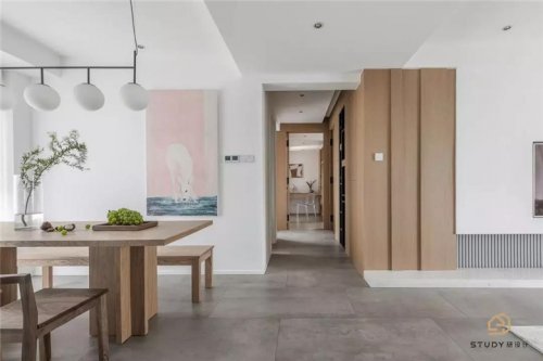 裝修公司通過空間重組,陽(yáng)臺(tái)納入室內(nèi),利用造型隱藏原有的落水管,整體空間更為開闊整體,原本的空調(diào)機(jī)位拆除,增加柜體儲(chǔ)物與疊放洗衣機(jī)烘干機(jī),冰箱挪到餐廳,釋放廚房的操作空間,對(duì)主臥進(jìn)行了比較大的改造,與原本的書房合為一體,將豐富的儲(chǔ)物空間,閱讀上網(wǎng)的空間,及睡眠空間整合,既相互貫穿又彼此獨(dú)立,更符合業(yè)主的生活習(xí)慣。
