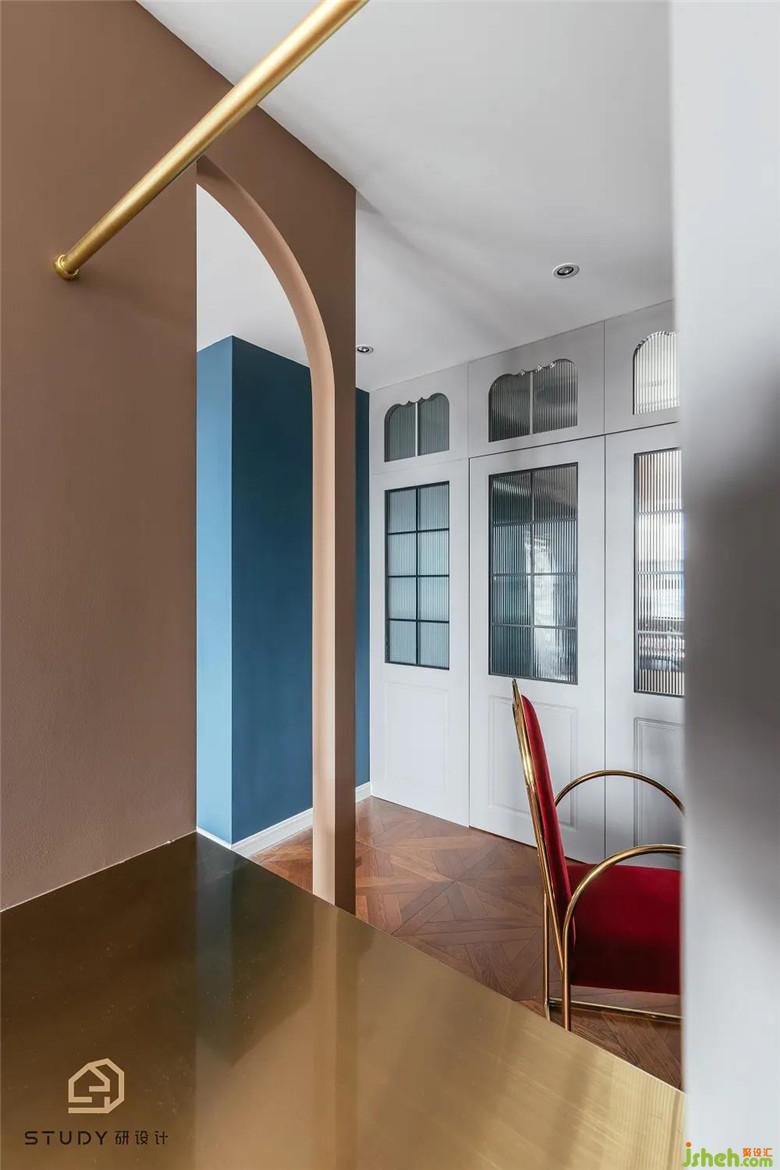 特別定制的衣帽間雙開(kāi)門,線條圓潤(rùn)復(fù)古,