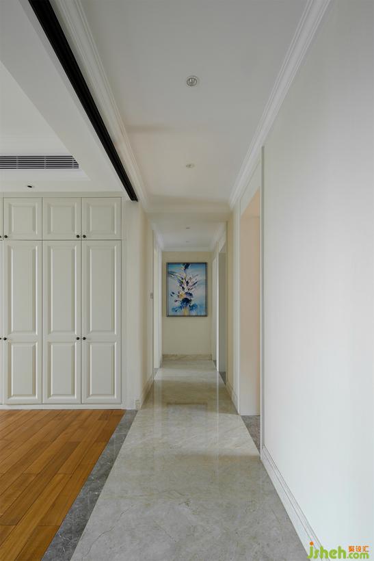 過道書房設(shè)計利用素色壁紙,讓立面散發(fā)出中性沉穩(wěn)氛圍,并掛上一幅藝術(shù)畫作,在燈光照射下增添人文藝術(shù)感。