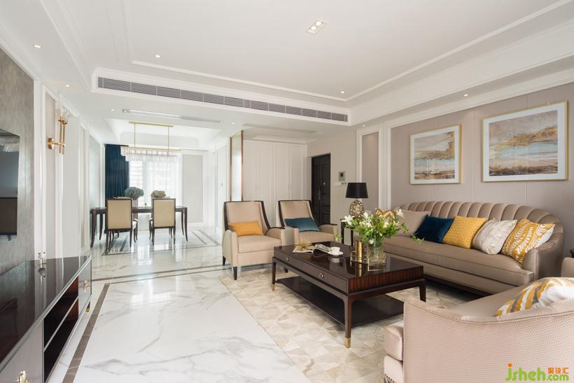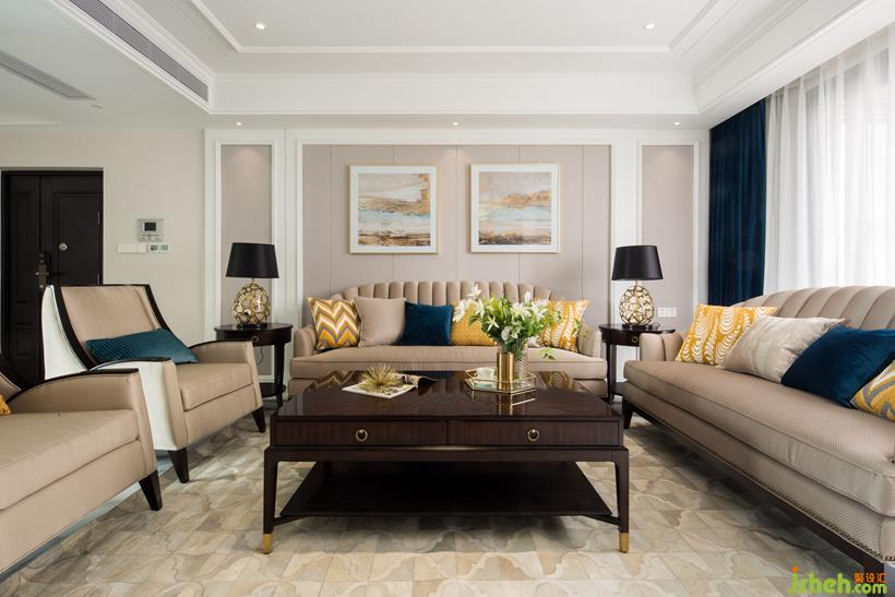 暗金色的飾品掛畫,搭配可至的貝殼沙發(fā),營造適合屋主的居家品味。設計公司