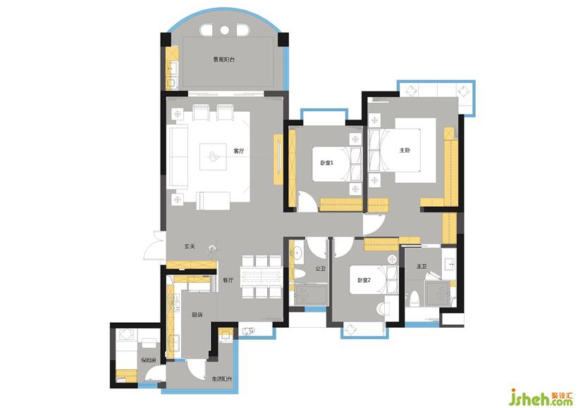 通過調整隔間,完善并營造良好餐廳區(qū)域。通過設計給予完善的衣帽間,提升屋主的生活品味。設計公司