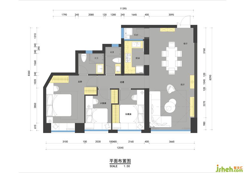 以兩種灰色調(diào)作為空間基底。電視主墻的中灰,鋪陳轉(zhuǎn)折沙發(fā)背景墻的淺灰。設計公司