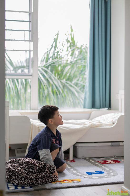 長(zhǎng)輩房以長(zhǎng)住考量,以定制榻榻米的形式,機(jī)能一應(yīng)俱全。大面窗戶,發(fā)揮了采光極佳的先天優(yōu)勢(shì),營(yíng)造明亮干凈的舒壓氛圍。