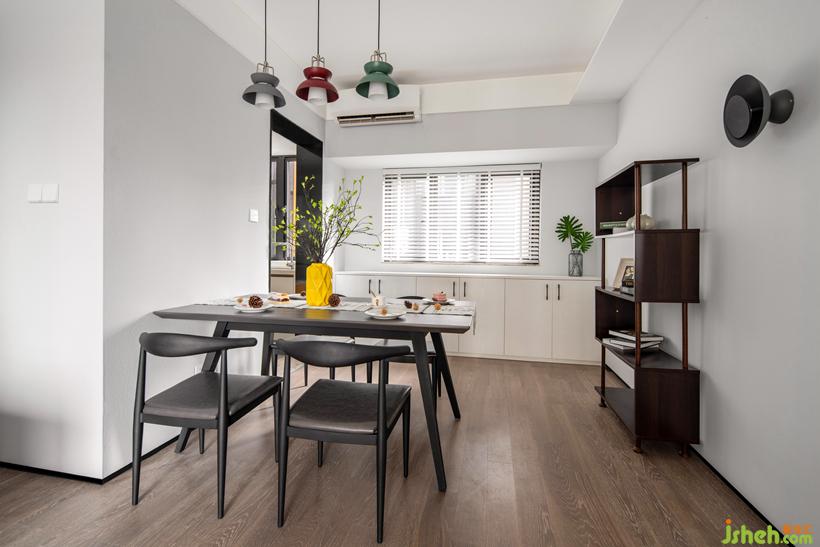 廚房墻用面包磚,櫥柜的黑色線條更顯利落。