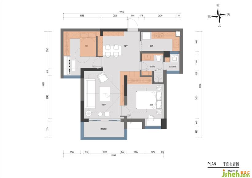 1.主臥開門位置移到客廳背景墻與大門錯開,安排上了。