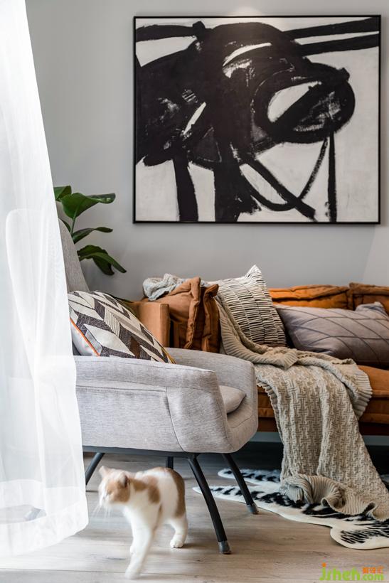 客廳的掛畫,像是某位大師的手筆,Sandy起先欣賞不來。直到掛在墻上才直言到,嗯,藝術啊!