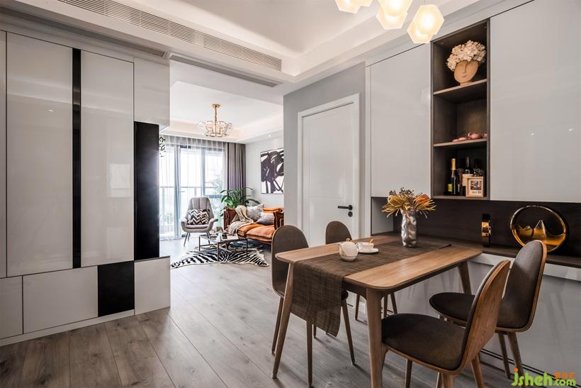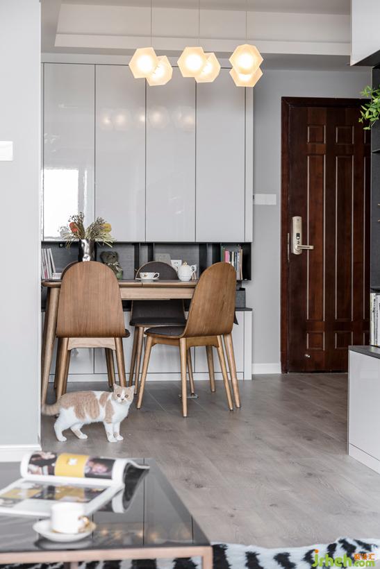 小戶型福星,從次臥空間爭取出餐邊柜,柜體凹洞平齊餐桌,作為餐桌的延伸。桌旗由Sandy日本背回。