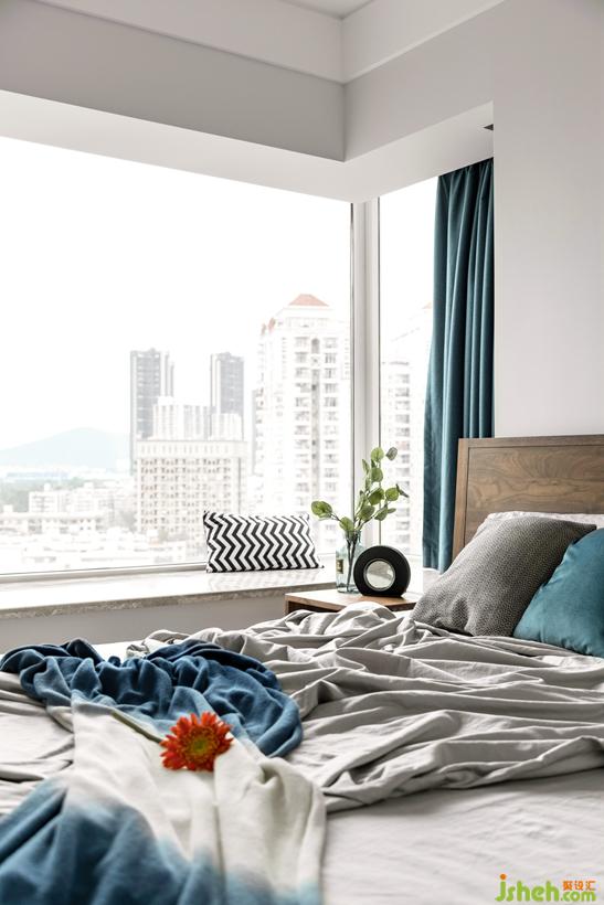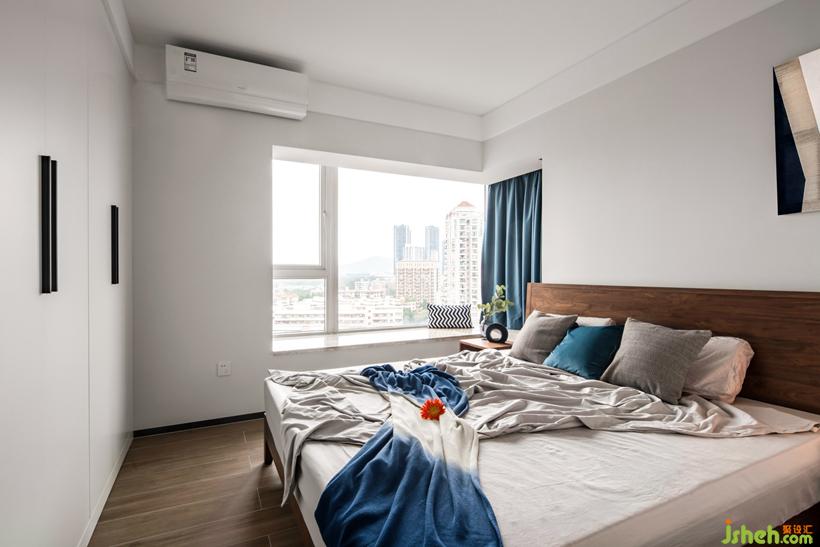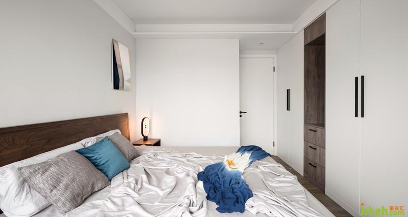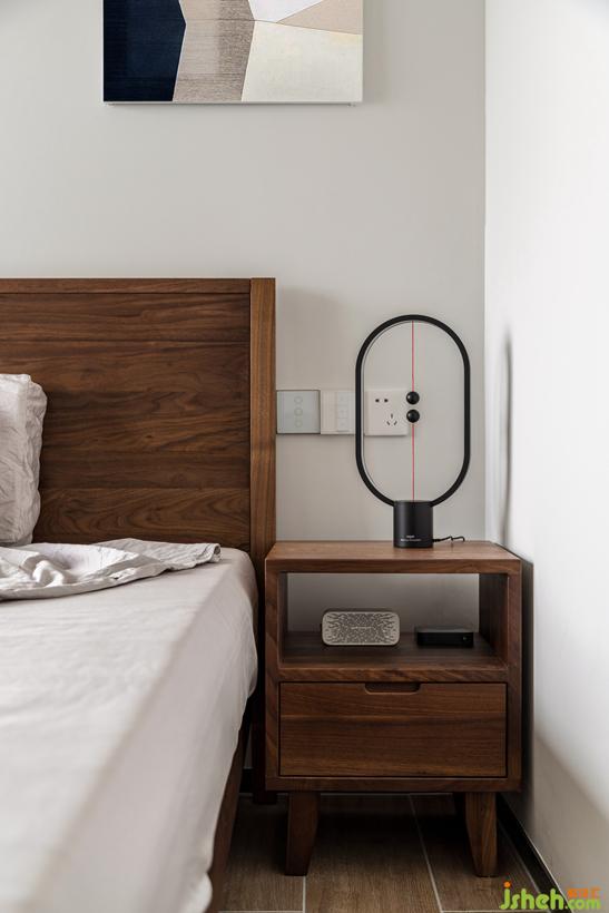 床頭墻面積窄,用不對(duì)稱的掛畫,平衡視覺感。木質(zhì)家具注入休閑與暖意,搭配出自然的觸感。