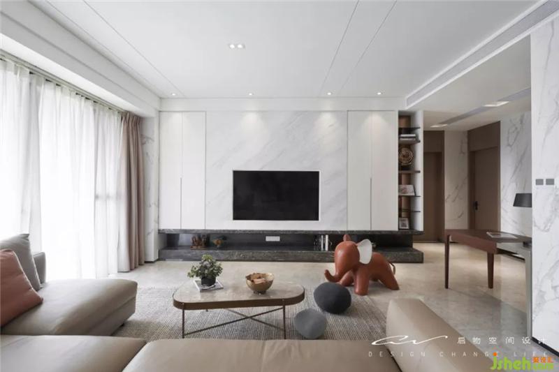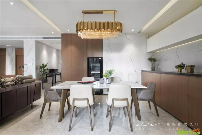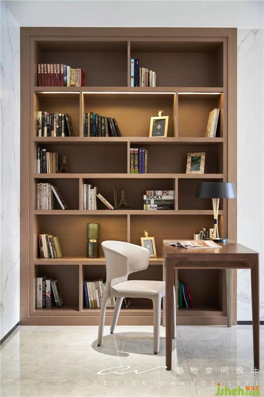 左邊從書房區(qū)走向臥室空間,右邊為玄關(guān)區(qū)。將硬裝的基底做到夠,再用少量的軟裝點綴,無需堆砌就能發(fā)散出大宅的氣魄。裝修設(shè)計