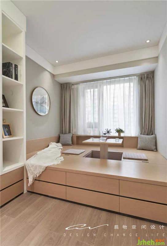 多功能房做榻榻米形式,矮柜與木擋板形成圍合感,閑時(shí)的品茶雅地,也是親友留宿的安心居所。裝修設(shè)計(jì)