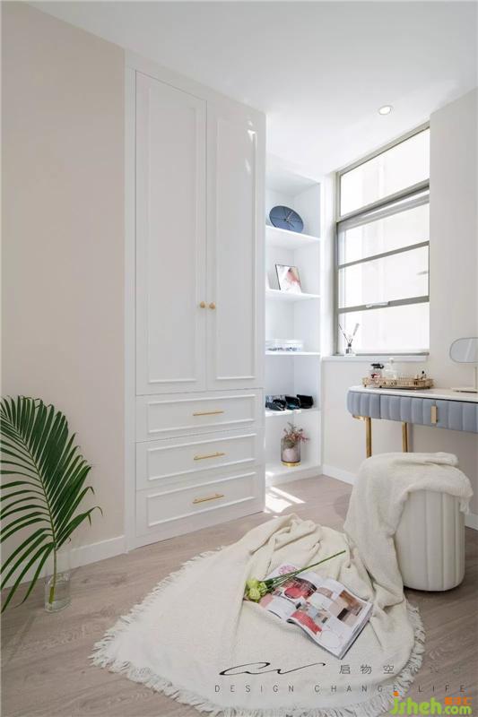 Sherry在雅蘭選床墊的時候,順帶把床也選了,于是這成了唯一在實體店購置的家具。床品并沒有換新,還承載著舊家記憶的鏈接。裝修設(shè)計