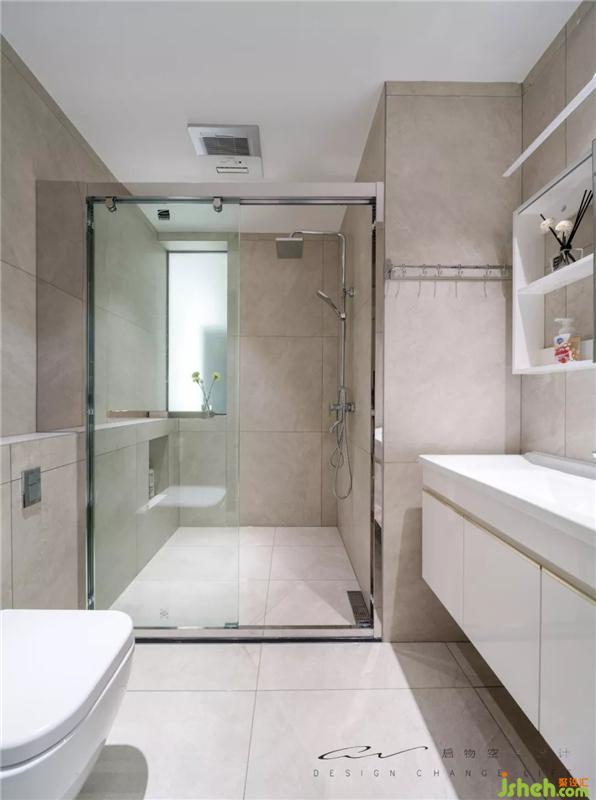 原公衛(wèi)很不合理,我們將馬桶改為墻排,sherry的媽媽擔心會堵,我們堅持了很久說服了阿姨。矮墻延伸到淋浴房,留出壁龕。上方又是個很好的置物位置。