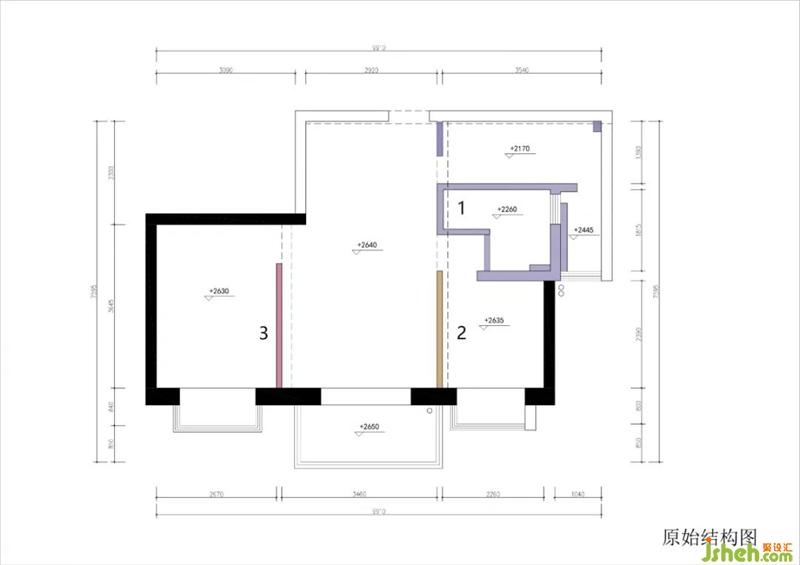 粉色區(qū):這堵墻很尷尬。擠到了主臥,切散了客餐廳,留下奇怪的凸角。裝修設(shè)計(jì)