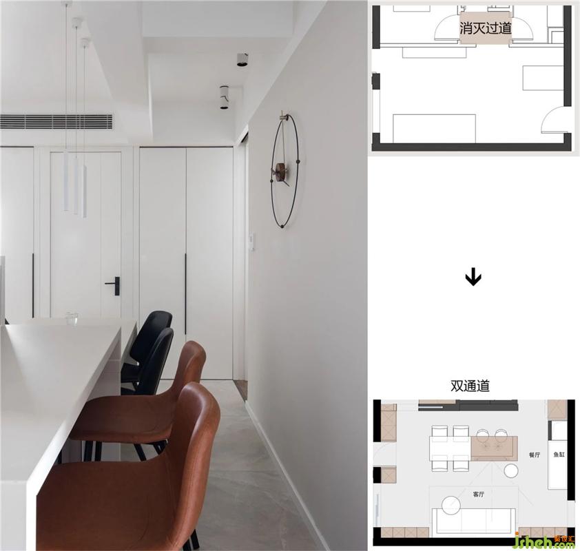 EN~亮點(diǎn)!68m2的房子也有雙通道的布局,在家也能少走彎路,此舉消滅了舊房的過道。裝修設(shè)計(jì)