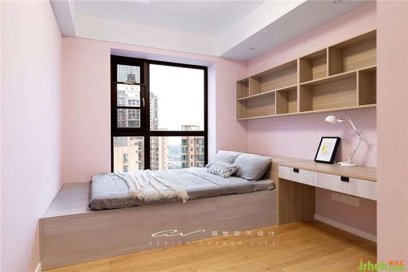 從過道來到女兒房,同樣造榻榻米,柜子巧妙找地站。收納棒顏值靚,住個10年都不亂!以后買買買也可以的。裝修設(shè)計