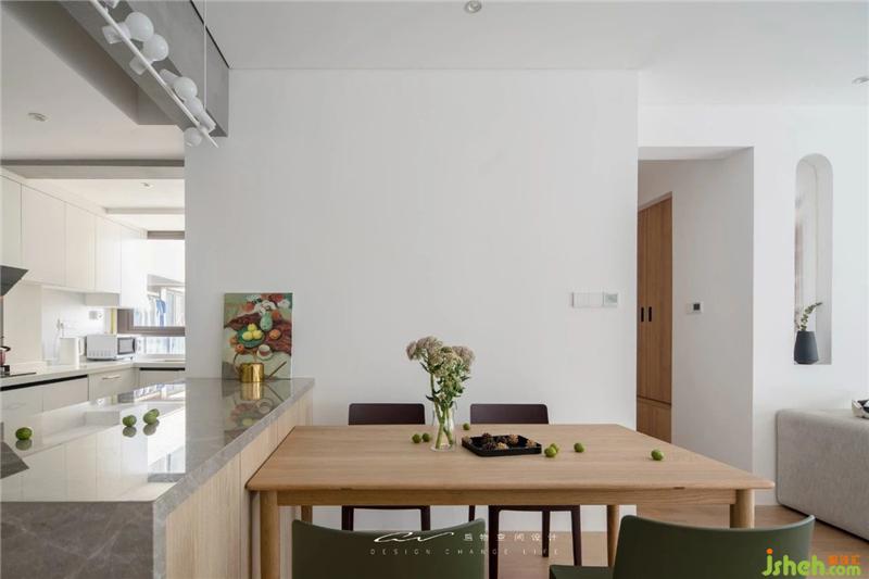 將水泥梁冰冷的材質(zhì),對(duì)比餐桌木頭的凝固的生命。兩種材料水火不容碰撞出平衡之美。裝修設(shè)計(jì)