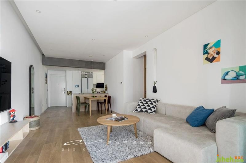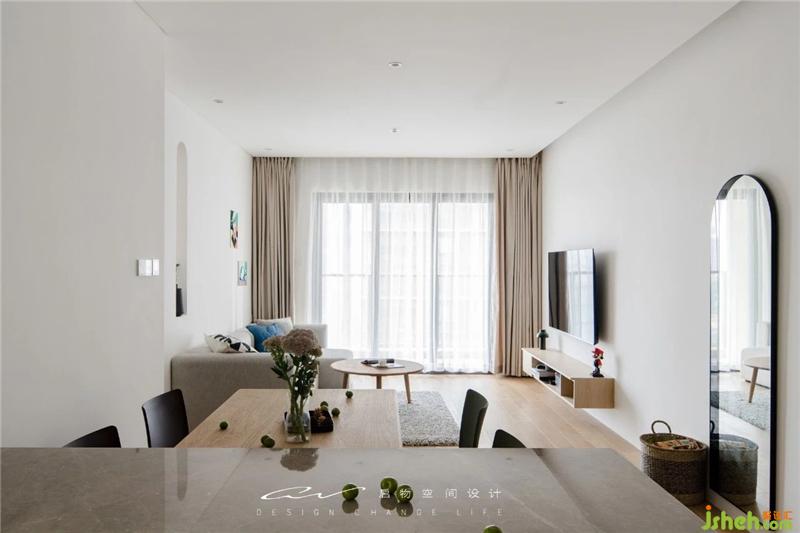 白色墻面散發(fā)寧?kù)o。沙色窗簾、地板氣氛和諧。