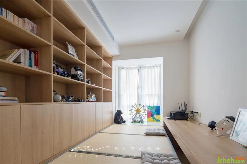 過(guò)道規(guī)范了門(mén)的高度,書(shū)房推拉門(mén)直接落在榻榻米上。裝修設(shè)計(jì)