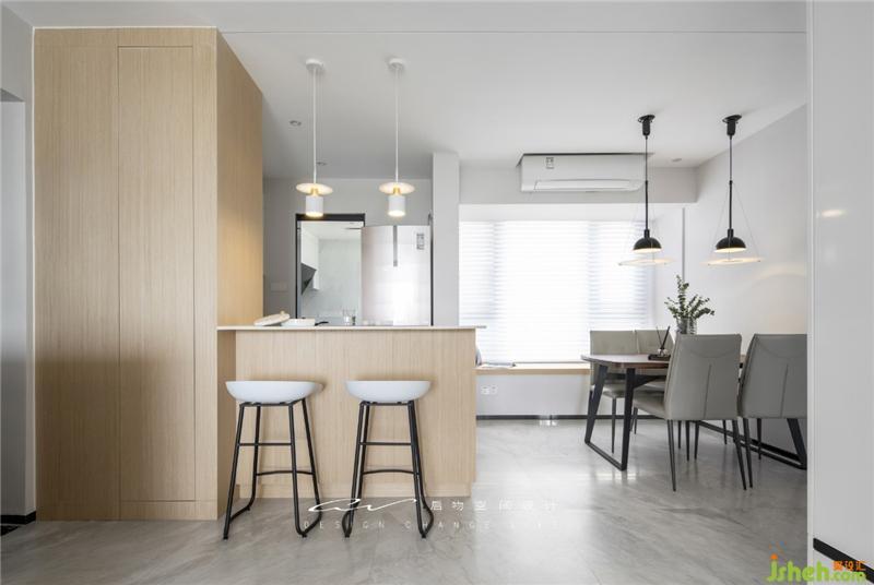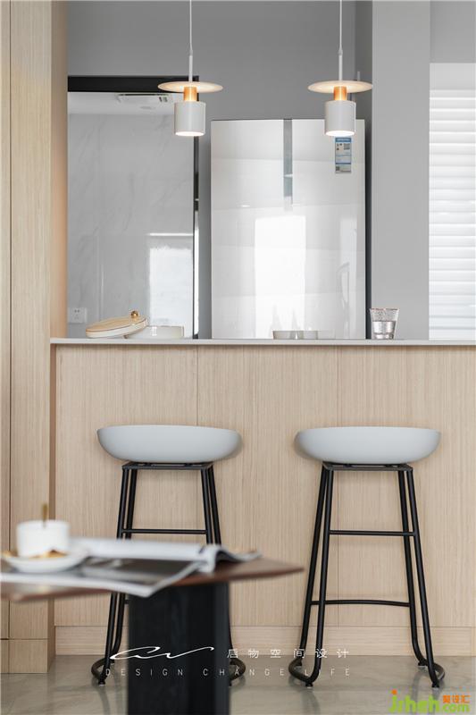 吧臺(tái)這塊原本是廚房實(shí)墻改造后作為西廚區(qū)。