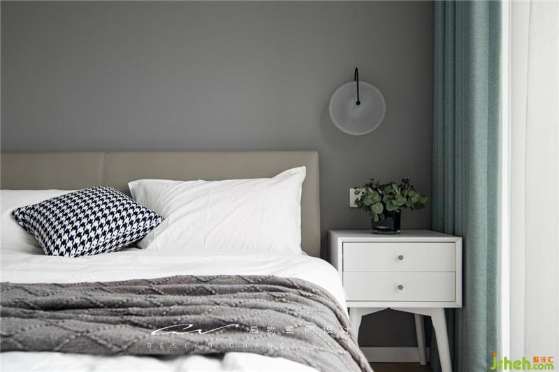 效果圖對比:深灰色的床頭背景體現(xiàn)了王小姐沉穩(wěn)內(nèi)斂的性格,搭配了些許布藝的色彩點綴,讓空間不再單調(diào)。裝修設(shè)計