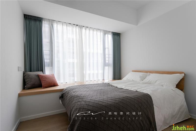 白墻與木質(zhì)家具的搭配,加上偏灰系的湖綠、橙紅撞色的點綴,讓長輩房素顏中不顯單調(diào),活潑中不失溫馨。裝修設(shè)計