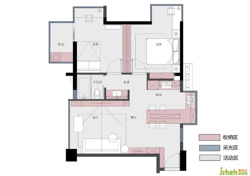 ?屋主2-3年會(huì)考慮小寶寶,有了小寶寶之后,父母也會(huì)過(guò)來(lái)一起住。短期內(nèi)主要考慮夫妻兩人一貓的居住舒適度,長(zhǎng)期要考慮孩子有玩?;顒?dòng)的區(qū)域以及父母暫住的空間,我們把原本主次臥室兩個(gè)空間對(duì)換,重新改墻體使兩個(gè)主次空間擁有各自完整機(jī)能。
