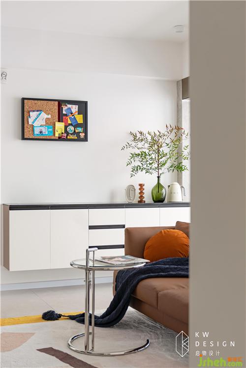 4:充分利用寬闊悠長的過道,前部分納入客廳,后部分還有整面的墻柜,除各個空間都有收納空間外,此處是全屋的集中收納。