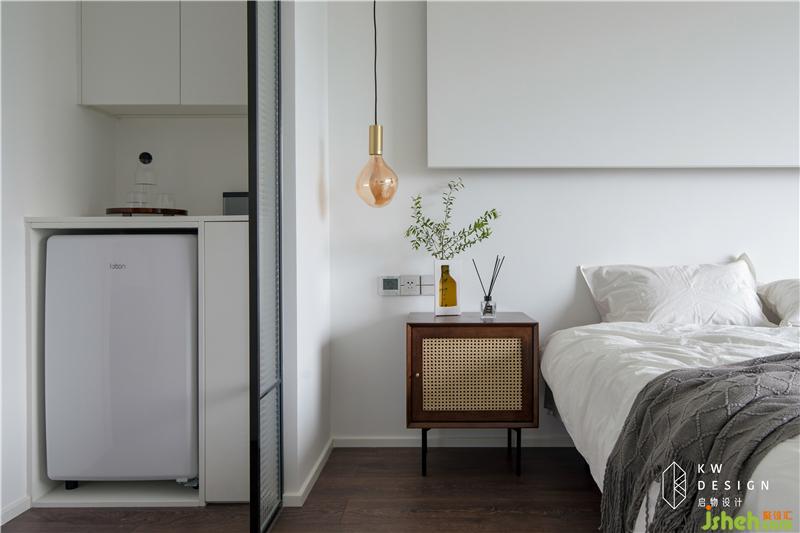 為了減少上下樓梯的繁瑣,主臥功能設(shè)計(jì)是生活客廳化,進(jìn)門(mén)處格出一小塊輕食區(qū),搭配一款簡(jiǎn)約又雅致的小冰箱,裝下酒水茶飲零食甜品隨時(shí)滿足味蕾,還能裝下面膜水乳精華等各種護(hù)膚品保鮮女主人的精致生活。