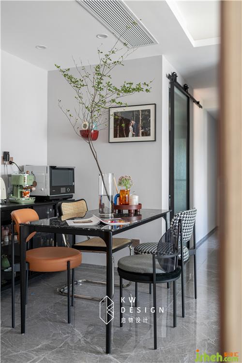 餐椅是四款不同材質(zhì)的,在這個空間里是俏皮活潑且和諧的,每一款都有呼應(yīng)空間的元素。