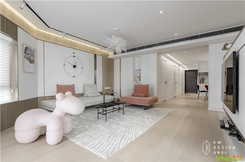硬裝造型以有溫度的木飾面打底,冷峻的金屬材質(zhì)和石材貫穿其中,軟裝以細(xì)形體柔和造型的家具和配飾(掛鐘,茶幾,吊燈)為主,搭配符合少女心的夢(mèng)幻顏色(沙發(fā)的珊瑚紅,ponychai的淺粉色)平衡空間中的硬朗和柔和,映襯主人工作與生活不同的精致面,貼合著主人堅(jiān)毅也溫柔的精神世界。家,就該是主人的樣子。