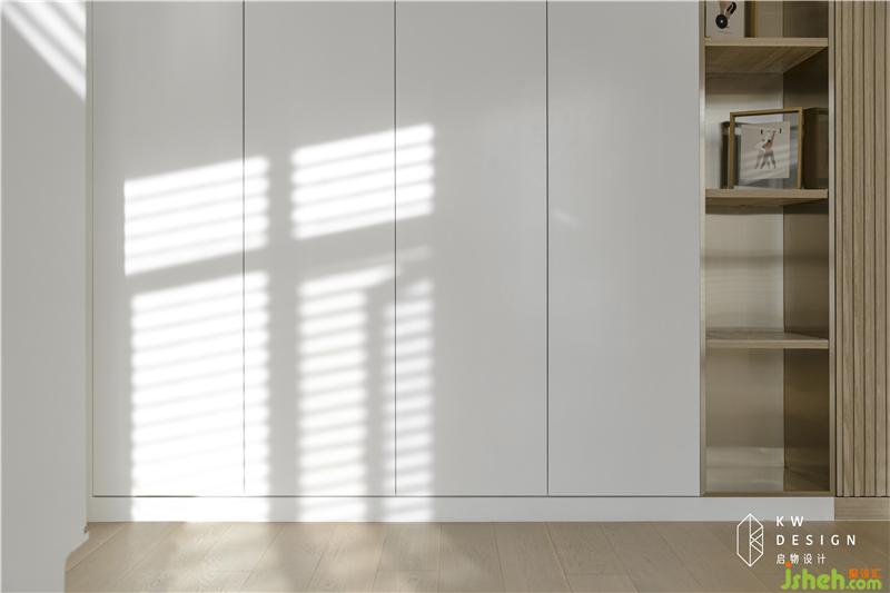 封掉進(jìn)陽臺(tái)的門,廚房做u字形,利用率達(dá)到最高。整體配色以簡潔為主,淺木色配白色,臺(tái)面用耐高溫好打理的巖板,柜子還是統(tǒng)一的無拉手無頂封板設(shè)計(jì)。
