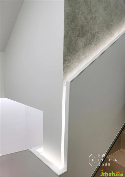 樓梯扶手外圍加燈帶附硬度高好打理的亞克力材質(zhì),面光的洗墻效果增加拾級(jí)而上的儀式感。