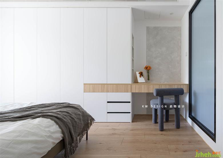 1. 進(jìn)門右邊空間設(shè)為舒適好用的主臥大套間,衣帽間與三分離衛(wèi)浴作獨立換洗區(qū)。深圳家裝設(shè)計睡眠區(qū)床尾梳妝臺連接衣柜作收納補充。陽臺增設(shè)地臺作多功能陽光房,沿窗設(shè)置可坐可書寫平臺,地臺通鋪至客廳電視墻與公領(lǐng)域行成洄游動線,功能又各自獨立,打造可靜可動的靈活場景。
